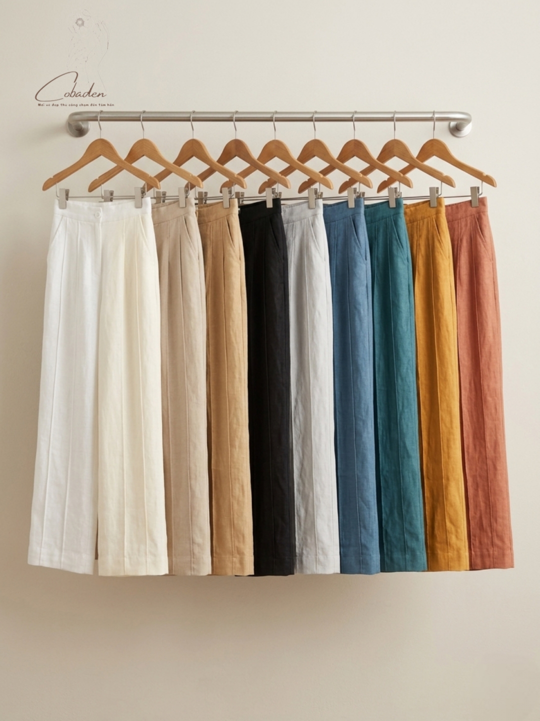 Với bảng màu đa dạng từ sắc trắng tinh khôi, be nhã nhặn đến những tông màu đất ấm áp và xanh đại dương sâu thẳm, Cobaden mang đến sự lựa chọn hoàn hảo cho mọi hoàn cảnh. Thiết kế ống rộng, cạp cao cùng những đường xếp li tinh tế giúp tôn dáng một cách tự nhiên nhất mà không hề gây gò bó.